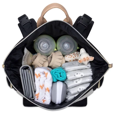 - Amazing function is complemented with a fashionable two-tone black and tan design with gold hardware, the perfect accessory for the modern Mom.