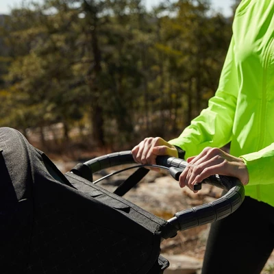 - Jogging Features: All-wheel suspension, hand-operated deceleration brake, and handlebar tether strap and swivel lock