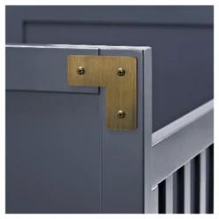 Create a space that is fun and sophisticated with the delightful Georgia 2-in-1 Convertible Crib by Baby Relax. Combining campaign and modern style, this charismatic crib is crafted with a sturdy wood construction and includes two full-size end panels. Sleek and safe, this crib comes equipped with four mattress positions that allow you to adjust the height of the platform as your child grows. When your child is ready, the Georgia also conveniently converts into a stylish toddler daybed. From functionality also sprang great design with modern features such as clean lines, a fresh graphite blue finish, and aged brass decor metal plates that accent the corners of the end panels. Combine the Georgia 2-in-1 Convertible Crib with the rest of the Baby Relax Georgia collection to design a playfully sophisticated nursery room that will live, move, and grow alongside your child.
