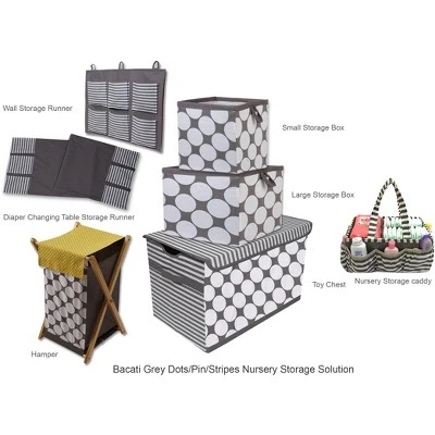 Bacati – Dots/Pin Stripes Gray/Yellow Laundry Hamper With Wooden Frame