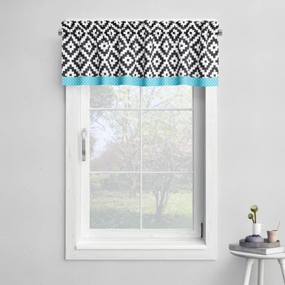- This Bacati 10-piece Crib Set Includes Reversible Comforter/Playmat (33 x 43 inches), Crib fitted sheet (52 x 28 x 6 inches), Crib Skirt/Dust ruffle (13 inch drop) Diaper Stacker (holds more than 30 newborn diapers), Reversible Long Crib Rail Guard Cover (52 x 12 inches), Window Valance (15 h x 56 w inches with 1.75 inch Rod Pocket), 3 pc Wall Hangings Set and Musical Mobile in fun, colorful and signature prints in 100 percent cotton 200 Thread Count percale fabrics. Designed in United States by Experienced Designers. Many coordinating items available to purchase separately in this Bacati Love Aztec Print Black Turquoise Bedding Collection.