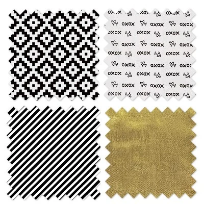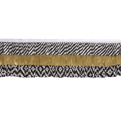 - This Bacati 3-piece Crib Set Includes Reversible Comforter/Playmat (33 x 43 inches), Crib fitted sheet (52 x 28 x 6 inches) and Crib Skirt/Dust ruffle (13 inch drop) in fun, colorful and signature prints in 100 percent cotton 200 Thread Count percale fabrics. Designed in United States by Experienced Designers. Many coordinating items available to purchase separately in this Bacati Love Black Gold Bedding Collection.