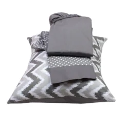 - This Bacati 3-piece Toddler Sheet Set Includes Toddler Bed Fitted Sheet (52 x 28 x 6 inches), Toddler Bed Flat Sheet(52 x 42 inches) which is fitted at the bottom to make the bed easily and Standard Pillow Case (20 x 25 inches) with rench ties on the back in fun, colorful and signature prints in 100 percent cotton 200 Thread Count percale fabrics. Designed in United States by Experienced Designers. Many coordinating items available to purchase separately in this Bacati Bedding Collection.