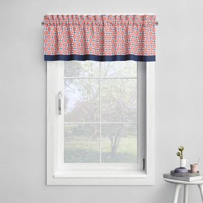 - This Bacati 6-piece Crib Set Includes Reversible Comforter/Playmat (33 x 43 inches), Crib fitted sheet (52 x 28 x 6 inches), Crib Skirt/Dust ruffle (13 inch drop) Diaper Stacker (holds more than 30 newborn diapers), Reversible Long Crib Rail Guard Cover (52 x 12 inches) and Window Valance (15 h x 56 w inches with 1.75 inch Rod Pocket) in fun, colorful and signature prints in 100 percent cotton 200 Thread Count percale fabrics. Designed in United States by Experienced Designers. Many coordinating items available to purchase separately in this Bacati Olivia Coral Navy Bedding Collection.