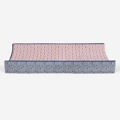 Bacati – Olivia Printed Dot/Cross Coral/Navy Quilted Changing Pad Cover