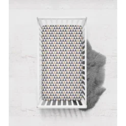 - This Bacati 3-piece Crib Set Includes Reversible Comforter/Playmat (33 x 43 inches), Crib fitted sheet (52 x 28 x 6 inches) and Crib Skirt/Dust ruffle (13 inch drop) in fun, colorful and signature prints in 100 percent cotton 200 Thread Count percale fabrics. Designed in United States by Experienced Designers. Many coordinating items available to purchase separately in this Bacati Woodlands Beige/Gray Bedding Collection.