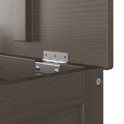 - Two safety hinges on lid allows for a soft-close to help protect little fingers