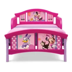 From the top of the headboard all the way down to the footboard, this Disney Minnie Mouse Toddler Bed by Delta Children is simply the sweetest. Designed for little kids with big imaginations, this colorful toddler bed features bold graphics of Minnie Mouse and Daisy Duck. The bed’s low mattress height and attached guardrails make it the best option for your child’s first big-kid bed, giving them the independence they crave while keeping them safe throughout the night. Get this toddler bed today and bring home the magic of Disney! Bedding and mattress not included.