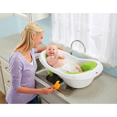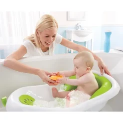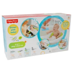 Four-stage bath center now features “Sit-Me-Up Support” to aid unsteady sitters in the tub. From newborn, to infant to toddler, this tub adapts to Mom’s and baby’s changing needs at every stage! Age Grade: Newborn Sling: 0 to 3 Months, Max weight: 15 LBS (6.8 KG). Infant Insert: 3 to 6 Months, Max weight: 20 LBS (9 KG). Sit-Me-Up Support: 6 to 9 Months, Max weight: 25 LBS (11.3 KG). Toddler Tub: 9+ Months, Max weight 25 LBS (11.3 KG).