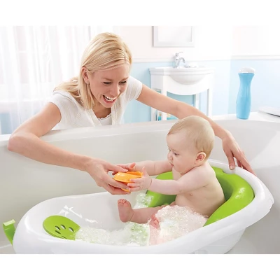 - Four stage convertible bath center with squeeze bottle & whale scoop for gentle rinsing or play