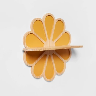 Bring personality and a pop of color to your kid’s room with this Flower Wall Shelf from Pillowfort™. Constructed from FSC wood for effortless style and lovely warm texture, this decorative wall shelf features a blooming floral motif with a built-in shelf to add functionality. Great for a bedroom or play room. Be sure to follow weight capacity guidelines, do not overload.