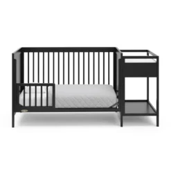 Designed to adapt to your growing baby, the Fable is equipped with an adjustable mattress support base with 4 different height options so the mattress support base’s position can be lowered as your child grows (please note, this crib may only be used until your child can easily climb out or is taller than 35 inches (89 cm). To support your child’s journey from babyhood to toddlerhood and beyond, the Fable is able to be converted from a crib to a toddler bed (compatible with 1 or 2 toddler guardrails, each sold separately), daybed, and full-size bed with headboard only (compatible full-size conversion kit sold separately). The Graco Fable 4-in-1 Convertible Crib and Changer is designed to accommodate any standard full-size crib & toddler mattress (mattress sold separately – we recommend any Graco full size crib & toddler mattress).