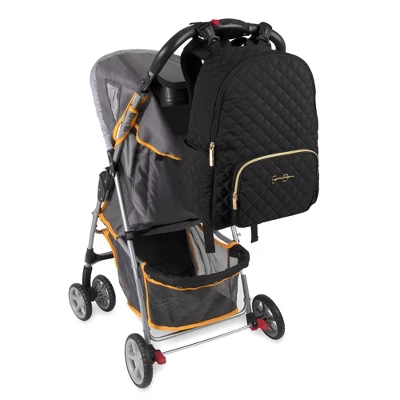 Our vegan leather backpack by Jessica Simpson was crafted to handle the needs and lifestyles of stylish, modern parents! Features include a temperature keeper dual bottle compartment, adjustable, air mesh padded back straps for air flow and breathability, smart grip carry handle, stroller clips, and a wipe-clean padded changing mat! This quilted diaper backpack for baby boys or baby girls, moms and dads alike can be worn, carried, or attached anywhere! With multiple pockets, carry and organize pacifiers, diapers, wipes, powder, snacks, electronics, changes of clothes, bibs, food jars, baby’s favorite stuffed animal friend, and more.