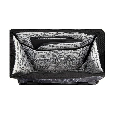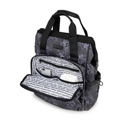 Pay attention class … it’s time for your next lesson in style! Chalkboard Floral boasts a bold black background with lightly traced white flowers reminiscent of chalk on an old school blackboard. This print is accented with black hardware and lined in white fabric with meaningful mommy mantras in black. The exterior wipes clean easily so there’s no banging erasers at recess for you! This innovative doctor bag boasts a vertical opening that stays open during diapering emergencies. Easy viewing helps you find whatever you need at a moment’s notice. Plus it’s packed with incredible features that made JuJuBe the must-have brand for new parents. A pocket for everything (including 6 exterior pockets and 12 internal pockets) combined with versatile carrying options keep you organized and efficient. Not to mention the stylish lining is made from recycled fabrics! Fashion fused with function is just what Dr. Mom prescribed!