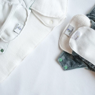 The Rumparooz 6R Soaker was designed specifically for the Rumparooz One Size Cloth Diaper, but has such a complete range of size and absorbency customization it can be used in any pocket diaper in your cloth diaper stash. Each Rumparooz 6R soaker is actually a pair of inserts, one contoured newborn insert with two snaps (3 layers thick) and one one-size insert with various snap settings (4 layers thick). The Rumparooz 6R soaker is the first one size insert that lets you fully customize both size and absorbency with 6 different settings.