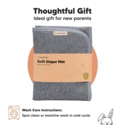 The KeaBabies Swift Diaper Changing Pad is the perfect portable changing pad for traveling. With a one-hand use design, this diaper changing mat easily opens up to a large baby changing pad area of 25.5” by 13.5” and folds into a compact size of 6.8” by 8.5”. Its waterproof and padded diaper changing surface protects your baby from any public hard and dirty surfaces. An excellent travel diaper changing pad for modern parents who are on-the-go.