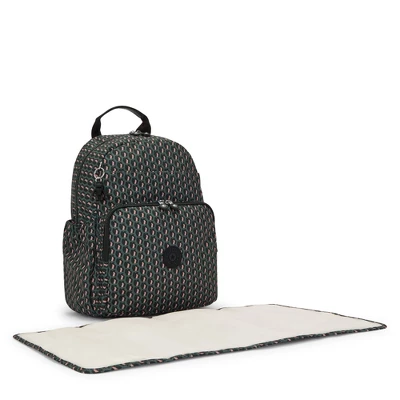 Toting your baby’s essentials around just got a lot easier. We amped up a lightweight nylon backpack diaper bag with comfy shoulder straps and infant-minded extras like a removable changing pad, side baby bottle pockets, and stroller clips. The roomy interior offers plenty of space for diapers, wipes, toys, and snacks, while front pockets offer a space for mom or dad to place their keys, cell phone, and wallet.