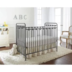 The Napa 3 in 1 full sized metal crib not only has designer looks but also sophisticated designer colors as in textured finish!! This ornate, but not ostentatious crib, has a beautiful appliqué at the top of all end panels as well as the left and right side rails and works with any decor for a boy or girl. Made with high quality steel and non toxic powder coated finishing techniques that easily stands up to years of repeated cleanings. The metal spring mattress support high is adjustable to three positions. The Napa can later be converted from a crib to a toddler bed or day bed with the optional conversion kit that is sold separately. Compatible conversion kit is FCS-94559-RPG (84674657)