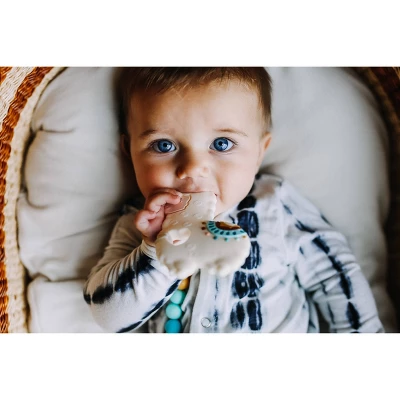 The LOULOU LOLLIPOP silicone teether with clip set comes with a standalone silicone teether and a pacifier/teether holder for the ultimate teething relief. Made of 100% high-quality food-grade silicone, our friendly Llama Teether features nubby textures on both sides to soothe sore gums. The heart-shaped cut-out allows for attaching an optional clip. The additional gemstone-inspired clip featured a one-piece molded design with no screws or metal parts. It opens with ease but grips on clothing or blanket tightly for optimum security. Tested regularly at a government accredited lab to meet and exceed safety standards. Cleaning is easy; simply wipe down or wash in warm soapy water. DO NOT STERILIZE.