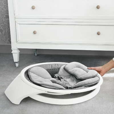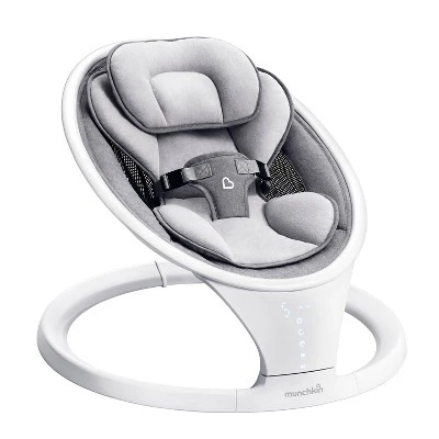 Some babies only nap when rocked or held – which is downright exhausting for sleep-deprived moms and dads. When you need a second or third set of arms to get through the day, Munchkin’s Bluetooth enabled Swing is here for you! A study in sleek functionality and smart design, this baby swing has a compact silhouette that’s easy to put together and break down again. It recreates the calming side-to-side swaying motion most babies love, making it the next best thing to being cradled in your arms. The included remote lets you control everything from the motion and timer to the selection of calming sounds. Soothe your mini impresario with classical music from Bach, Beethoven, Mozart and Chopin, or one of eight ambient sounds. Since the swing is Bluetooth compatible, you can connect to your phone and stream baby’s favorite tunes, too! At under 10 pounds, this lightweight infant swing conveniently disassembles into two parts, so you can store it away in tight spots — even under the bed! And since it’s so easy to pack down, it’s also perfect for transporting to grandma’s house, on vacation, or simply room to room at home. Time to reclaim your arms — and your sanity! Includes a 1-year limited warranty.