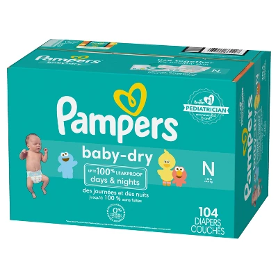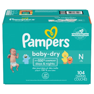 A good night’s sleep starts with a great diaper, and Pampers Baby-Dry diapers give you and your baby up to 100% leakproof nights and happy mornings. Made to protect your baby’s delicate skin, our exclusive LockAway Channels absorb wetness and lock it safely away, while our protective Dri-Weave Liner helps keep skin healthy. Plus, our Baby-Dry Diapers are hypoallergenic and completely free of parabens and latex.* These are just a few of the many reasons Pampers is the #1 pediatrician recommended diaper brand – and your baby’s best bet for comfy protection. Pampers also keep messes to a minimum. To help contain leaks and prevent blowouts, our Baby-Dry diapers feature all-around stretchy sides and large tape fasteners for a secure and comfy fit. Plus, they come equipped with our Dual Leak-Guard Barriers that are specially designed to protect around the legs, where leaks tend to happen most. And when your baby is due for a diaper change, our handy Wetness Indicator lets you know. No need for guesswork. Use Baby-Dry diapers with our Pampers Sensitive Wipes to help keep your baby’s skin healthy and prevent irritation. New & improved! Packaging and prints may vary. Ships in 100% recyclable packaging. *Natural Rubber