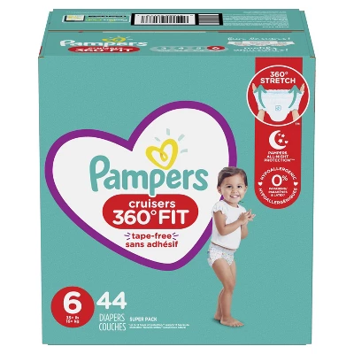 Pampers Cruisers 360 diapers are our best fit and protection for your active baby. Unlike ordinary disposable diapers that gap in the back, Pampers Cruisers 360 diapers stretch comfortably around your baby’s waist and adapt to their every move for a flexible, gap-free fit that is up to 100% leakproof. Plus, they feature our Dual Leak-Guard Barriers that gently seal around your baby’s legs, where leaks happen most.