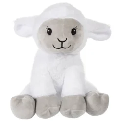 Sheep plush toy is made of soft plush with a white body, glacier gray face and feet, black embroidered face and measures 9 inches tall.