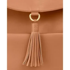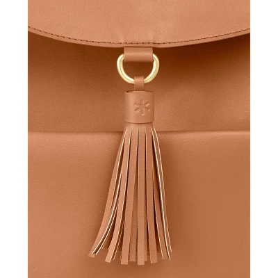 - Luxe wipe-clean vegan leather & tassel accent