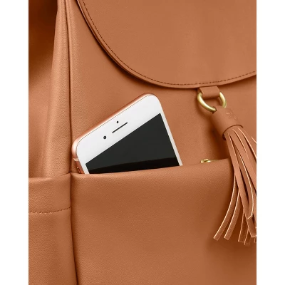 Meet the latest addition to our Greenwich Collection! Crafted in the same luxe vegan leather you love, this pack & grab must-have is loaded with easy-going style for everyday use. Featuring a top zip and magnetic flap closure with a tassel accent, we also included a hidden front pocket for easy access to parent essentials, plus built-in stroller straps, a changing pad and plenty of room for all your baby’s gear.