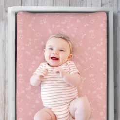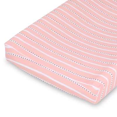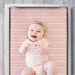 The Wildest Dreams 3-Pack Changing Pad Covers by The Peanutshell add a touch of feminine elegance to your nursery while providing a cozy surface for fuss-free diaper changes. Soft and gentle fabrics in shades of pink are crafted with utmost care. The beautifully blooming designs include a feminine floral rosette, delicately detailed stripe, and tonal vine floral. Elasticized edges guarantee a secure fit on most standard-sized changing pads. Mix and match the covers to create a fantastically feminine look!