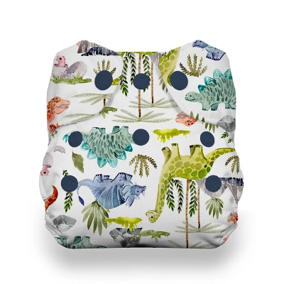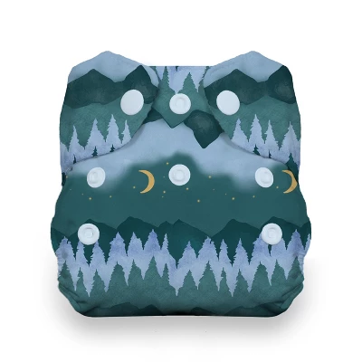 Thirsties Newborn All In One was carefully designed with the needs and comfort of a new baby in mind. This trim-fitting diaper includes an umbilical cord snap down (only available in snap closure version) and adjustable rise, providing a custom fit for most babies from (5-14 lbs). Our convenient Newborn All in One delivers absorbency, waterproof protection and adjustability all rolled up into a stylish, comfortable, and extremely effective cloth diaper. A built-in, three-layer microfiber terry soaker absorbs an amazing seven times its weight in liquid. The soaker is topped with our stay-dry microfleece which keeps your baby feeling dry. An additional layer of terry lies between the microfleece and TPU body of the diaper providing a last line of defense. The soaker is sewn in on one side (at the top of the diaper), which makes adding extra absorbent layers a cinch and tremendously decreases drying time…it’s the fastest drying diaper we’ve ever created! All in all, Thirsties Newborn AIO gets a BIG thumbs-up from your wallet, your family, your daycare facility, and occasional caretakers alike.