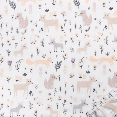 Lay your little fawn down on Trend Lab’s Mystical Forest Deluxe Flannel Crib Sheet. Our Mystical Forest Deluxe Flannel Crib Sheet features adorable forest animals and pastel flowers. 100% cotton flannel crib sheet has 10-inch deep pockets and full-length elastic offers a more secure fit on standard 28-inch x 52-inch crib mattresses. Coordinating blankets, burp cloths, and bibs by Trend Lab are available and sold separately. Please adhere to JPMA’s Safe Infant Bedding Practices.